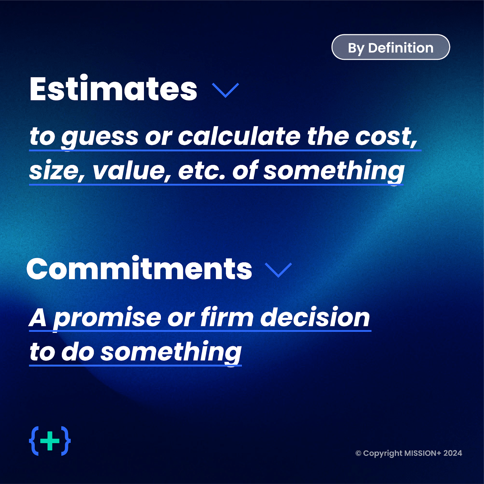 The product manager and the tech lead nervously look at each other. A bead of sweat slowly drips down the senior developer's brow. Are they being asked for Estimates, or Commitments?