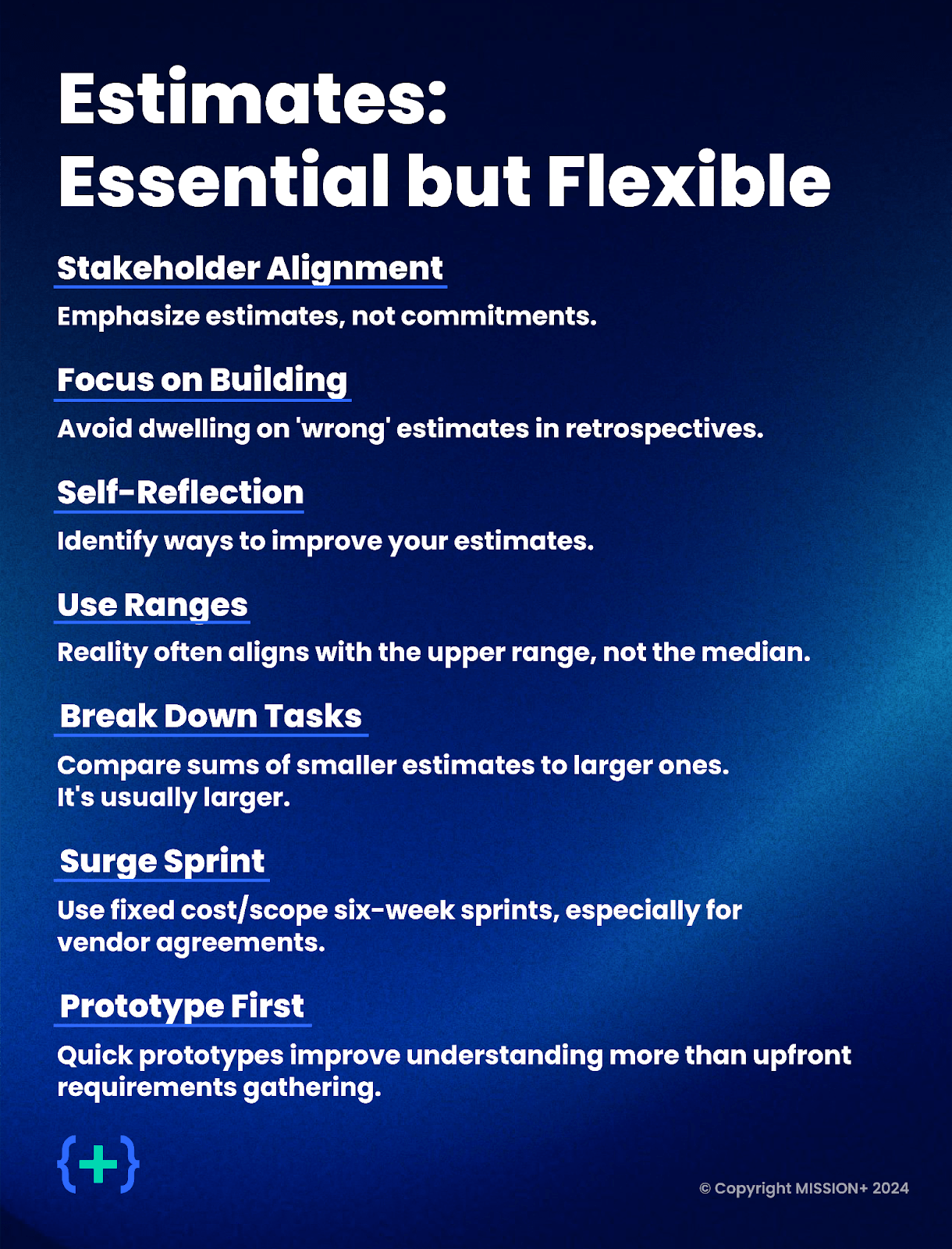 The tension between estimates and stakeholders who need to know how much to budget remains a critical challenge. As with so much in life, communication is key.