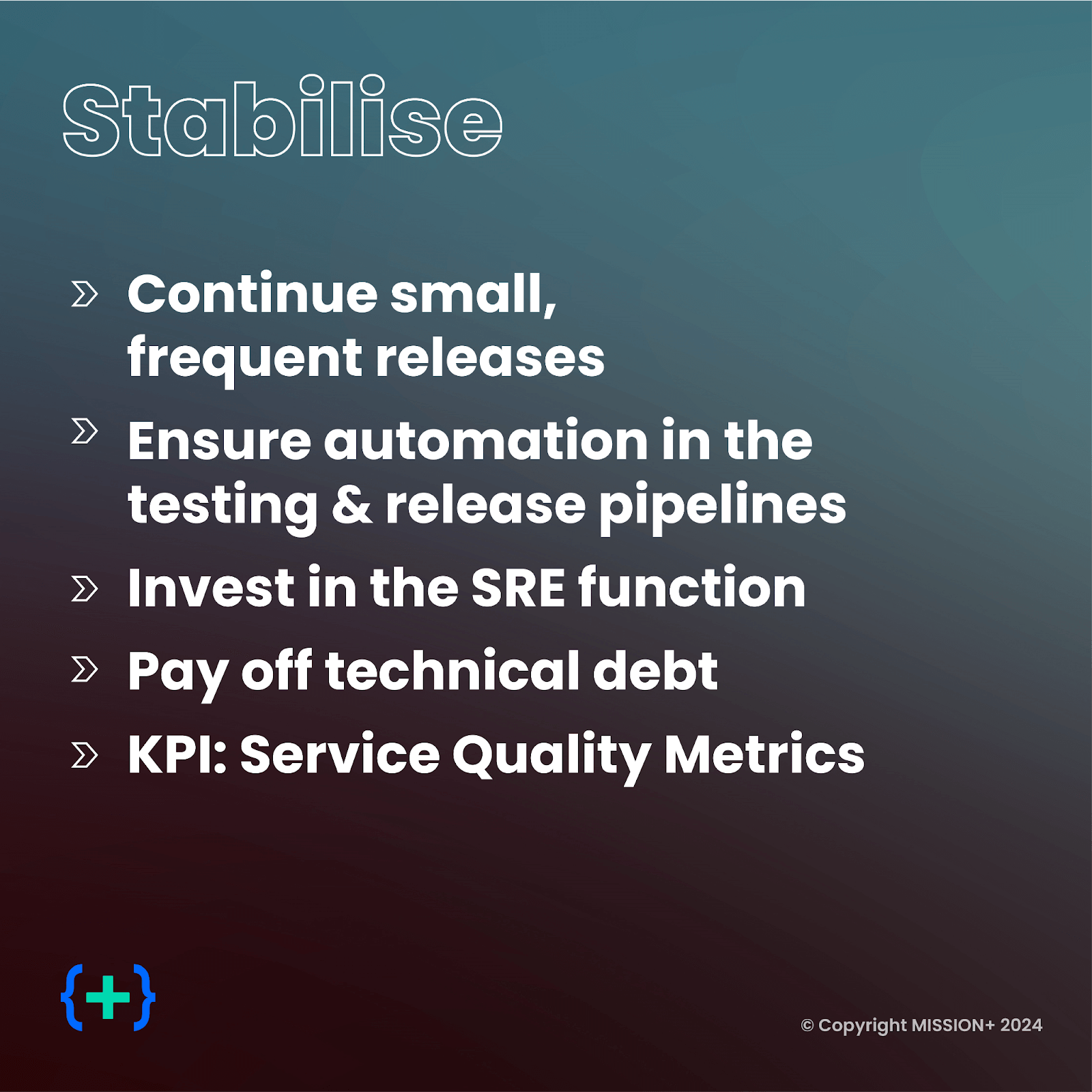But we do need to try and make things more stable. If slowing down releases isn’t the answer, what is? Enter Site Reliability Engineering (SRE) - “what you get when you treat operations as if it’s a software problem”. If you don’t have an SRE function yet, create one. If you do - do they need anything?